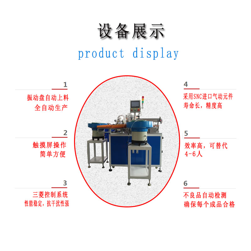 4:人工只需補充物料,設(shè)備自動依次完成各工序組裝,并自動下料