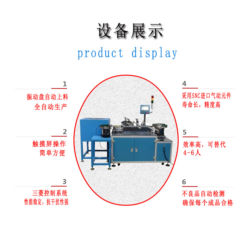 4:人工只需補充物料,設(shè)備自動依次完成各工序組裝,并自動下料
