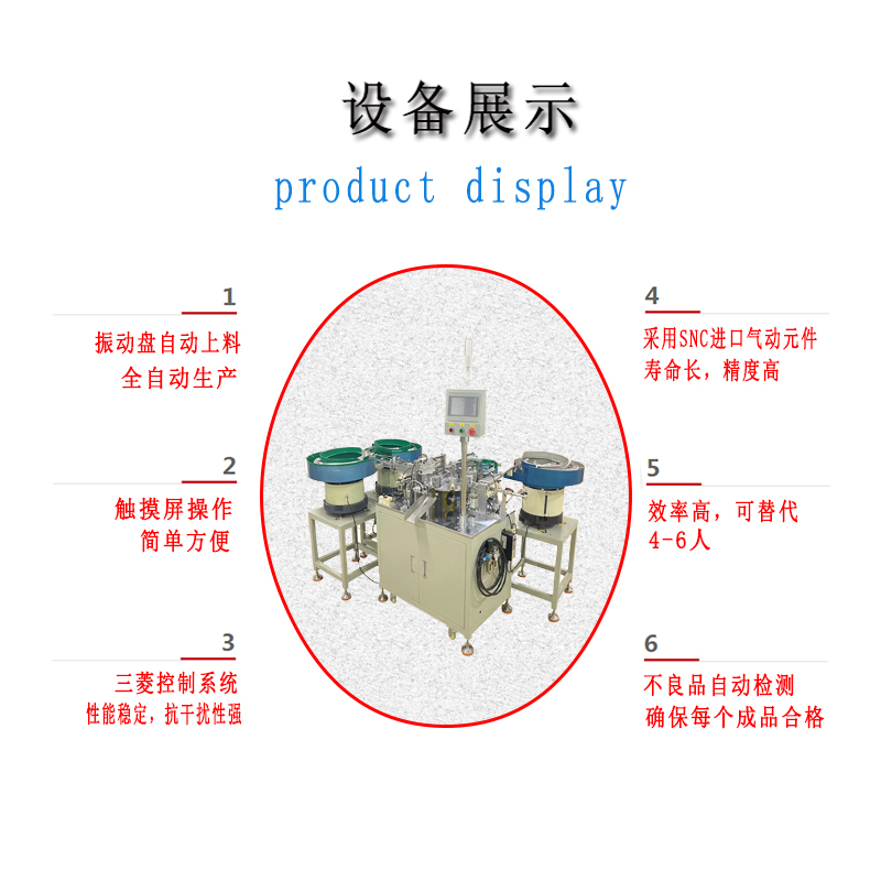 4: Manual replenishment of materials is sufficient, and the equipment automatically completes the assembly of each process in sequence and automatically unloads the materials