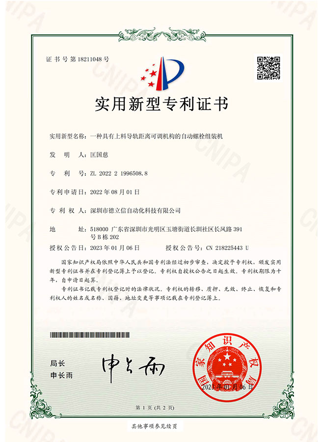 An automatic bolt assembly machine with a distance adjustable mechanism for feeding guide rail...