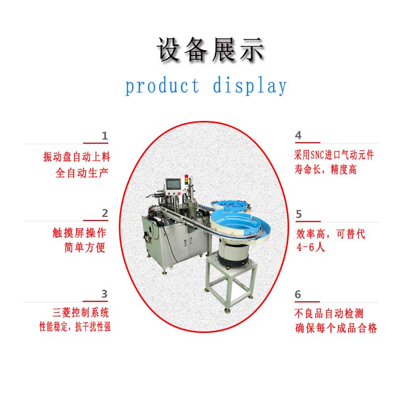 4:人工只需補(bǔ)充物料,設(shè)備自動(dòng)依次完成各工序組裝,并自動(dòng)下料