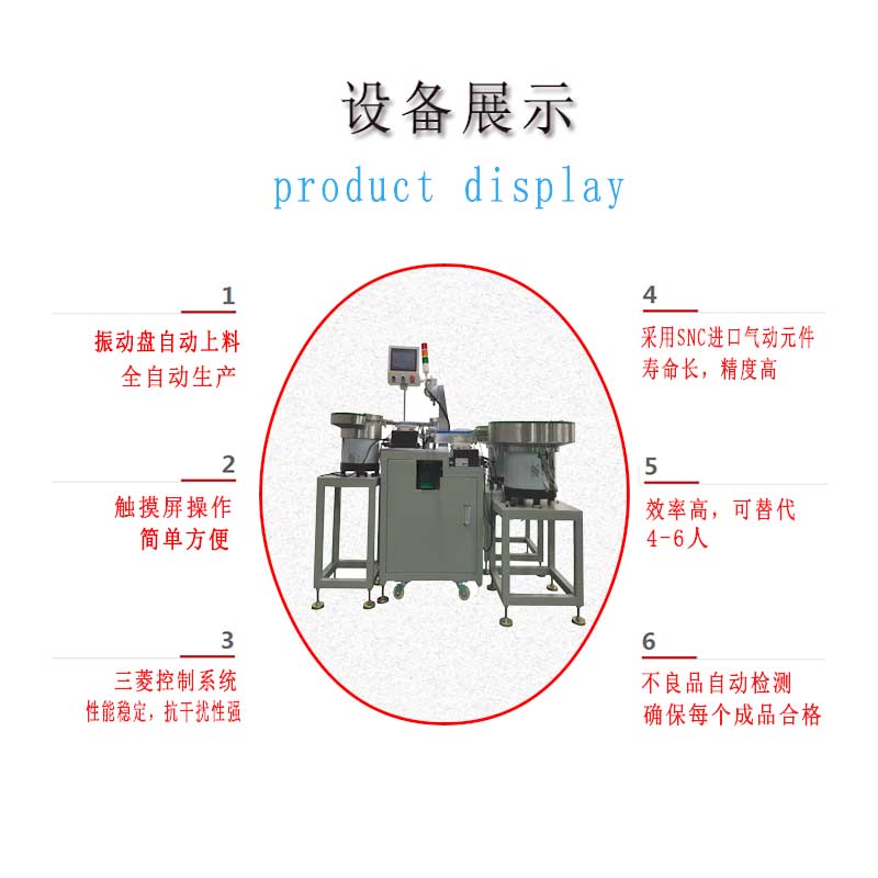4:人工只需補(bǔ)充物料,設(shè)備自動(dòng)依次完成各工序組裝,并自動(dòng)下料