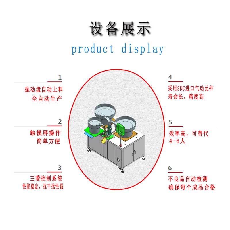 4:人工只需補(bǔ)充物料,設(shè)備自動(dòng)依次完成各工序組裝,并自動(dòng)下料