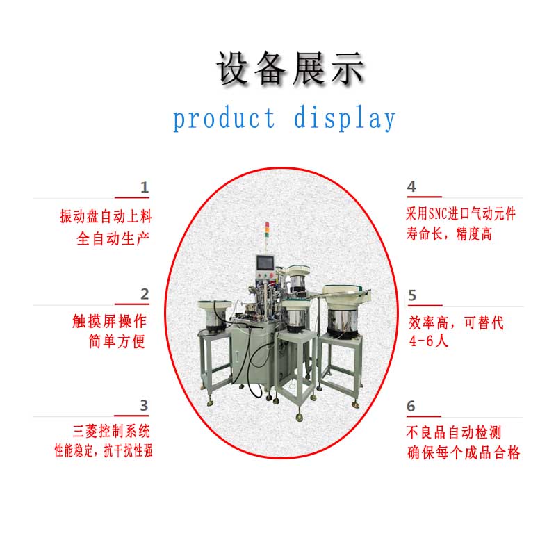 4:人工只需補(bǔ)充物料,設(shè)備自動(dòng)依次完成各工序組裝,并自動(dòng)下料