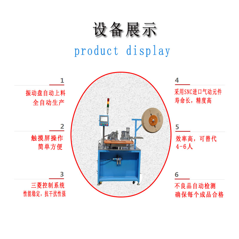 4:人工只需補(bǔ)充物料,設(shè)備自動依次完成各工序組裝,并自動下料