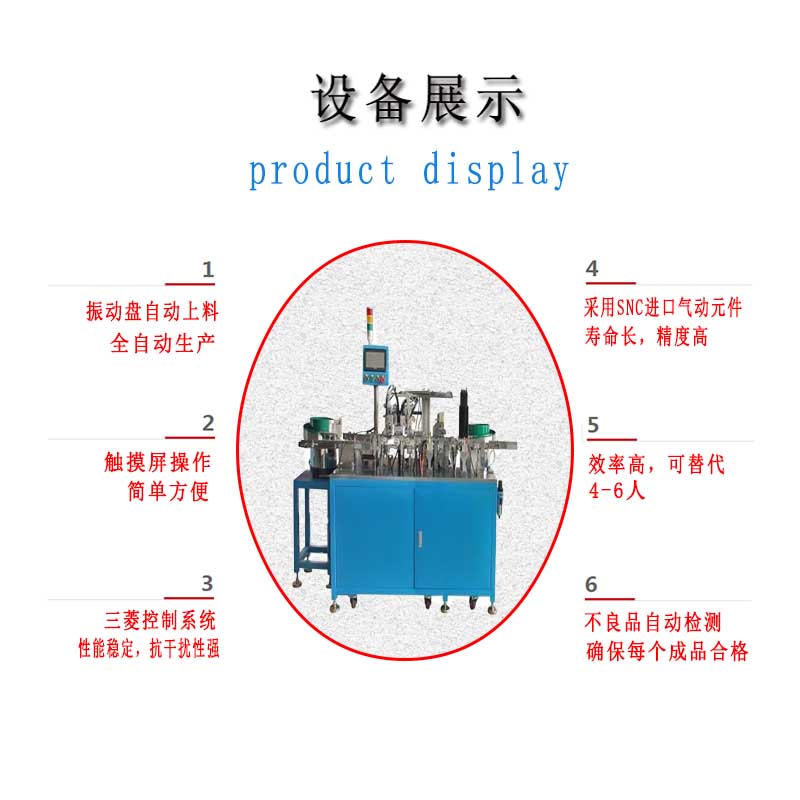 4:人工只需補(bǔ)充物料,設(shè)備自動(dòng)依次完成各工序組裝,并自動(dòng)下料