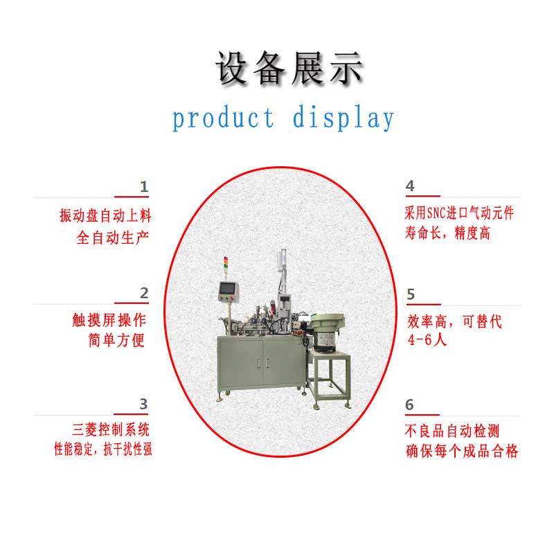 4:人工只需補(bǔ)充物料,設(shè)備自動(dòng)依次完成各工序組裝,并自動(dòng)下料