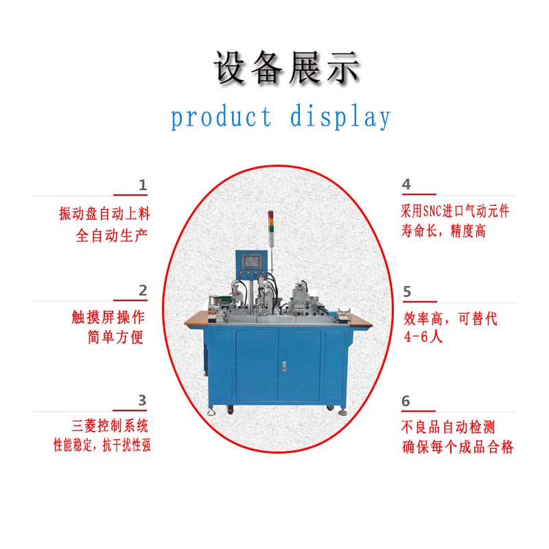 4:人工只需補(bǔ)充物料,設(shè)備自動(dòng)依次完成各工序組裝,并自動(dòng)下料