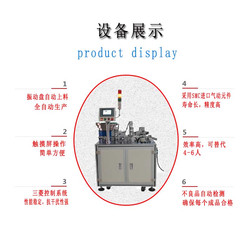 4:人工只需補(bǔ)充物料,設(shè)備自動(dòng)依次完成各工序組裝,并自動(dòng)下料